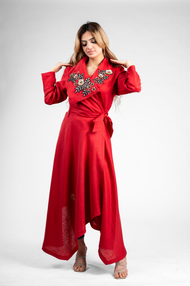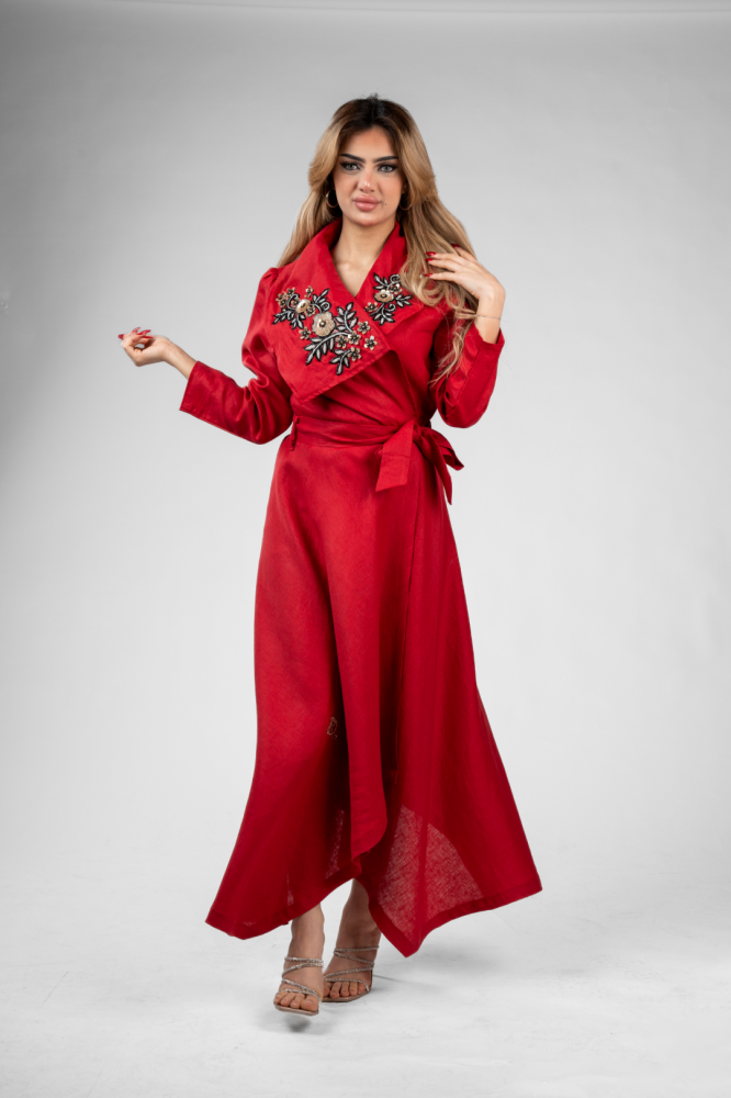 Linen blazer with neck embroidery, beads and colored sequins.